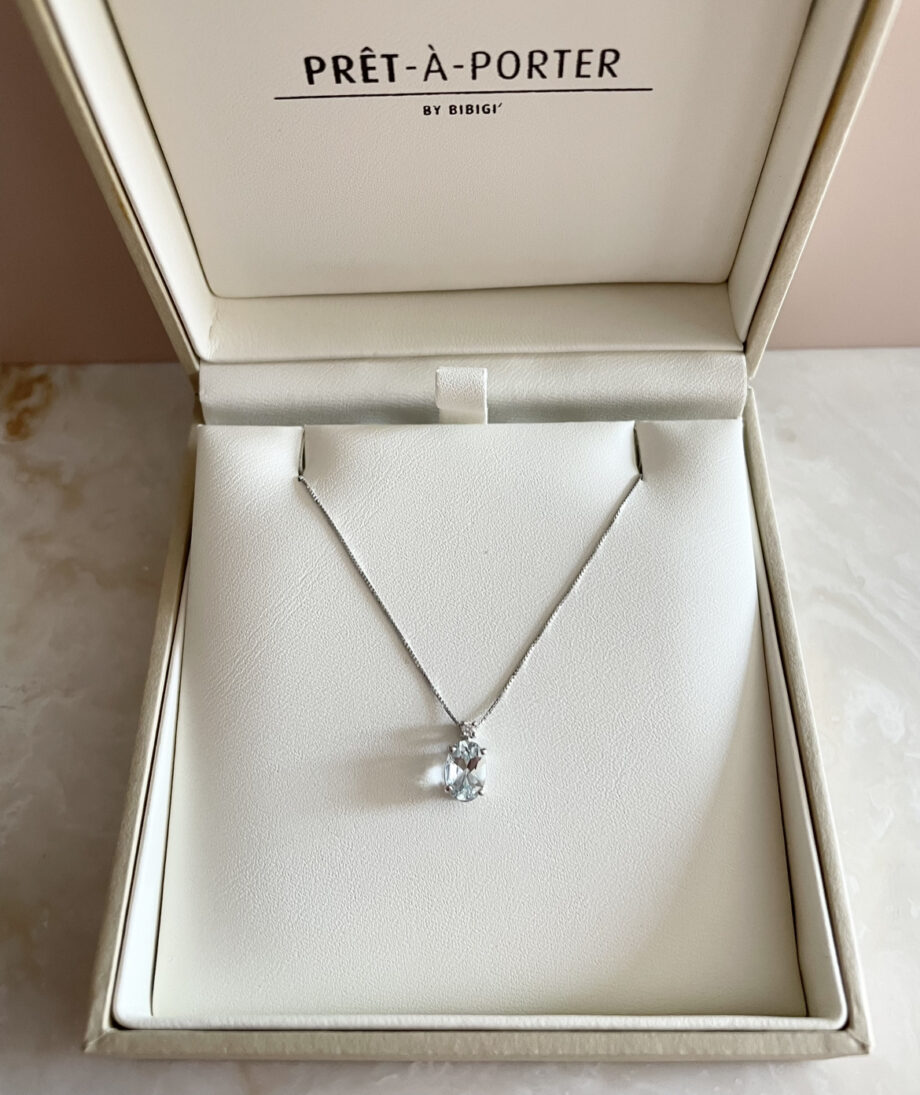 Bibigì – Girocollo in oro bianco con acquamarina taglio ovale e diamante della collezione Prêt-à-porter
