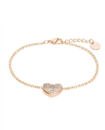 Bracciale in acciaio rosato con ciondolo cuore e strass Code 1670577